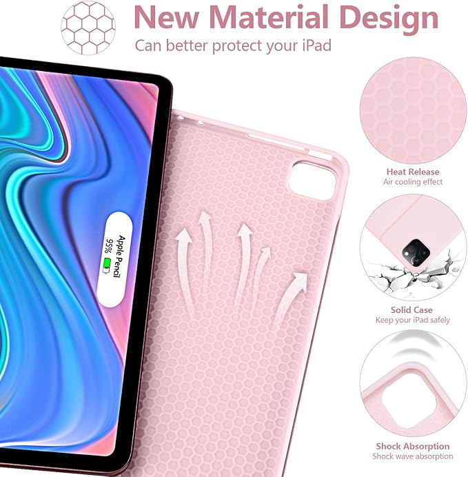 - Heat release & for iPads whole body protection: IPads pro 12.9 inch case with keyboard comes with honeycomb grid pattern design is better for heat release and anti-skid.Thoughtful design to effectively extend life of your beloved iPads.Solid keyboard case and wave shock absorbtion give comprehensive protection for your IPads Pro 12.9 Case 6th/5th Generation & for iPads air 13 inch from scratches and damage.