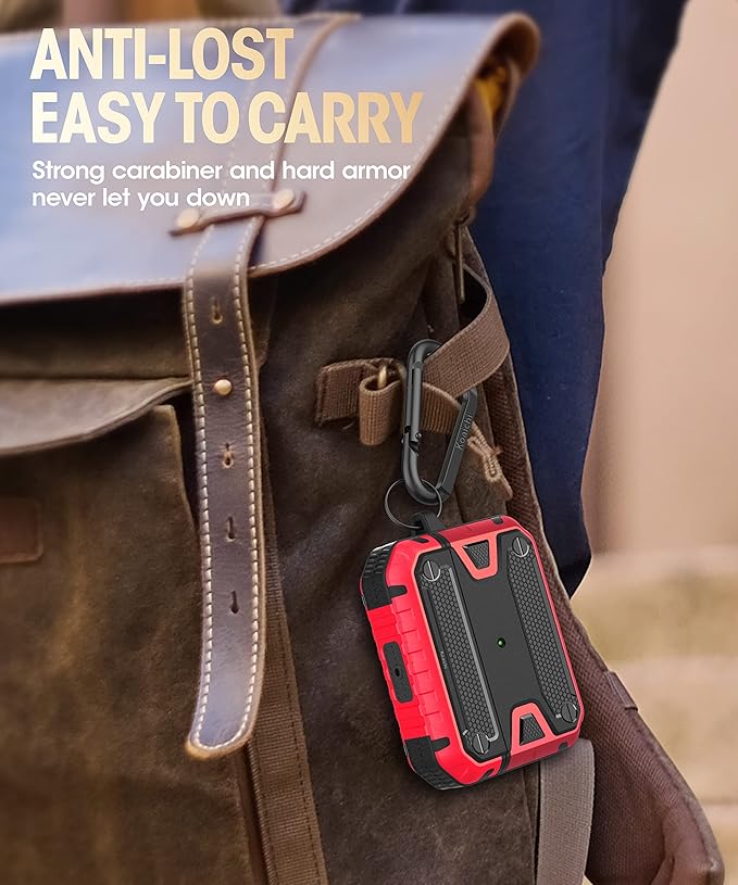 Koaichi Compatible with AirPods Pro(2nd Generation/1st Generation), Full-Body Rugged Hard Shell Protective Case Cover with Keychain Designed for AirPods Pro (2022/2019), Black/Red