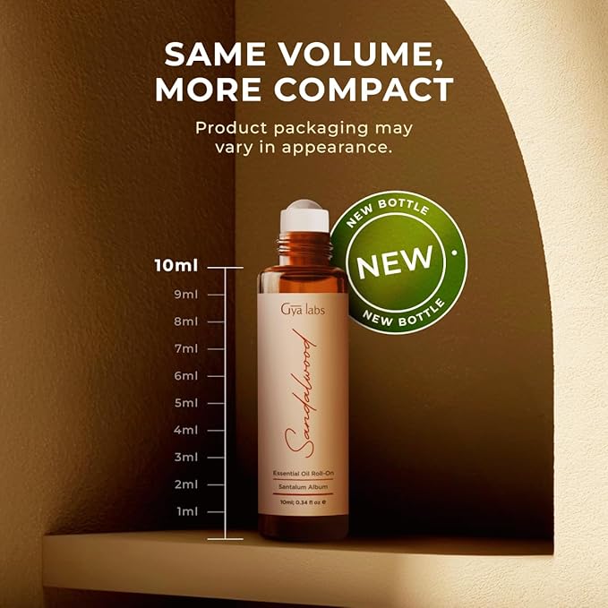 Gya Labs Sandalwood Essential Oil Roll On for Calming Essence Anywhere - Skincare and Captivating Scent for Both Women and Men - (0.34 Fl Oz) - Cruelty-Free, 100% Natural and Quality Assured