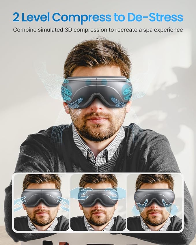 - 2 Level Compression & Heat Settings: Choose between 2 adjustable compression intensity settings to increase your state of calm. Enable a soothing heat of 104℉ (40℃) or get a deeper heat of 113℉ (45℃) to help with eye puffiness, dry eyes, and more.