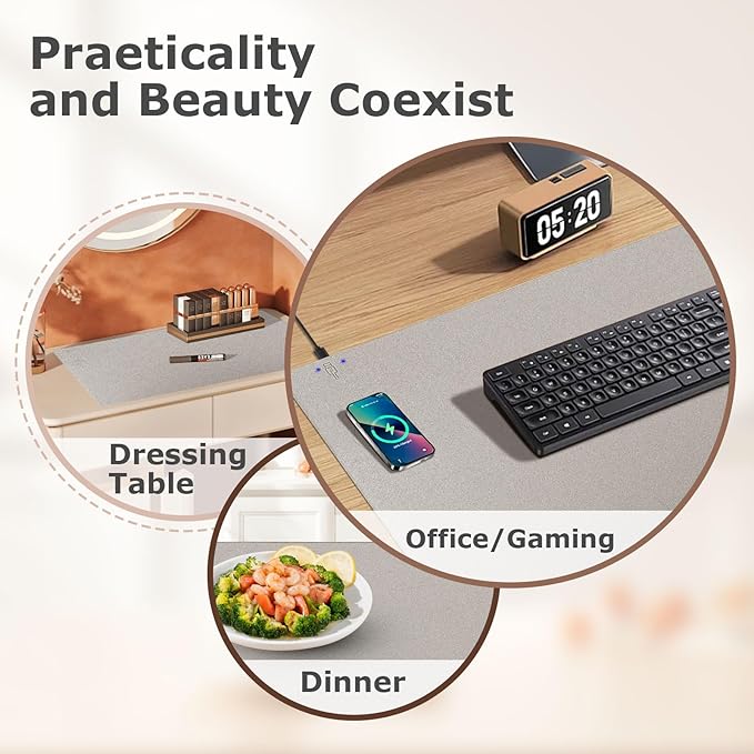 Wireless Charging Mouse Pad Firelison 2 in 1 Leather Multifunctional Office Desk Pad with Non-Slip Rubber Base, Waterproof Desk pad for Computers/Office/Work/Home/Decor( 32" x 16"Grey - L)