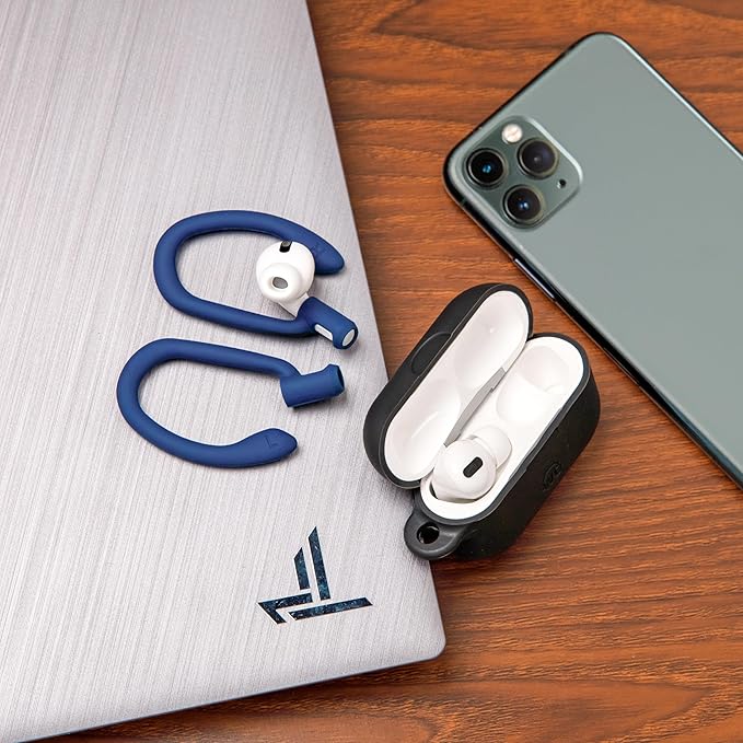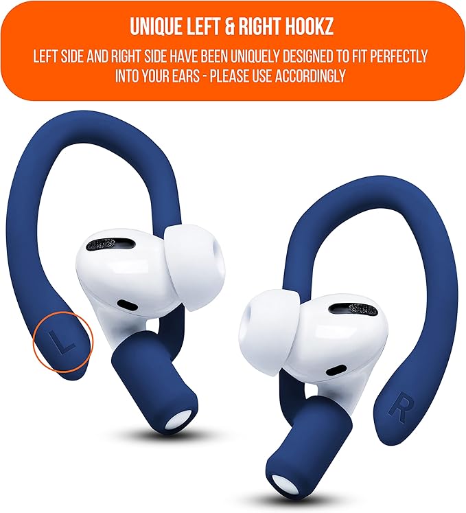 WC HookZ - Patented Upgraded Over Ear Hooks for AirPods Pro 1, 2 & AirPods 1, 2 & 3- Two Size Pairs Included in Package, Unique Left & Right Hook, Made by Wicked Cushions | Navy Blue