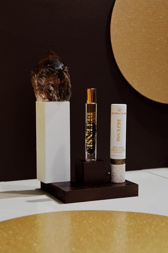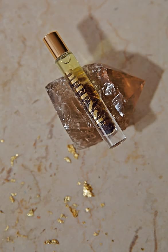 Essential Oil Rollerballs, .34 OZ, Defense - Smoky Quartz Crystal Infused - Scents of Frankincense, Neroli, & Sage - Aromatherapy Roll On Oils, Skin Care, Massage