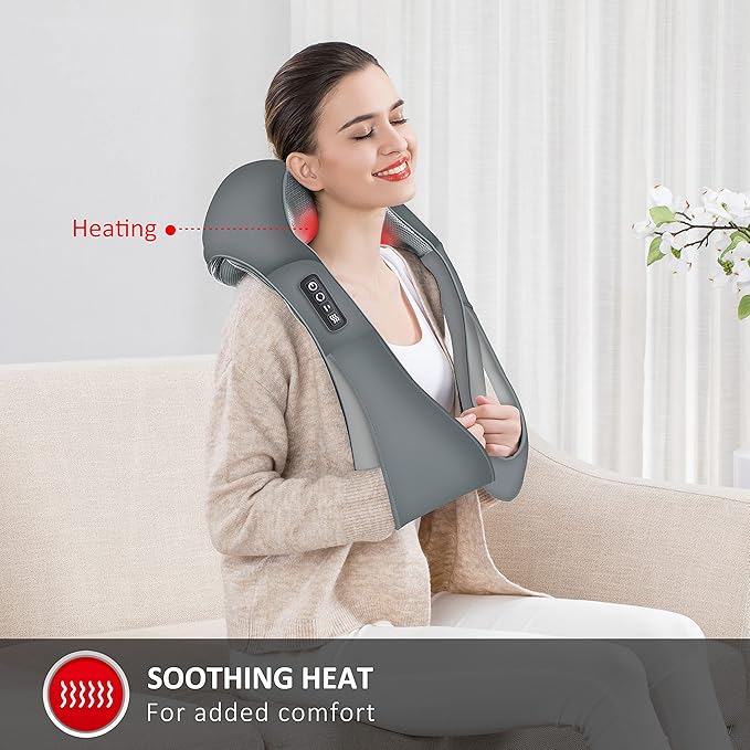 - Snailax neck and shoulder massager with heat has 8 nodes providing deep-kneading massage, which suit for your neck, shoulder, back, thighs, calves, reliefs the fatigue of working day.
