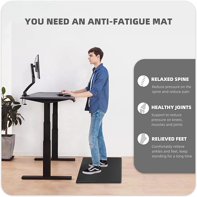 - Upgraded Cushioned Support: With 77% more thickness—now 0.71" instead of 0.4"—this mat delivers ultimate comfort wherever you stand. Our premium memory foam design significantly reduces joint and muscle fatigue, making it ideal for prolonged use in the kitchen, laundry room, or at your standing desk. The enhanced thickness provides superior relief, whether you're cooking, cleaning, or working.