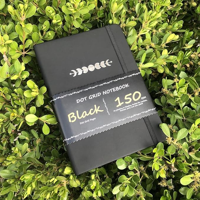 - ★ BUKE DOTTED JOURNALING: 150Gsm Black Paper, excellent for fountains pens and ink, no feathering and bleeding.