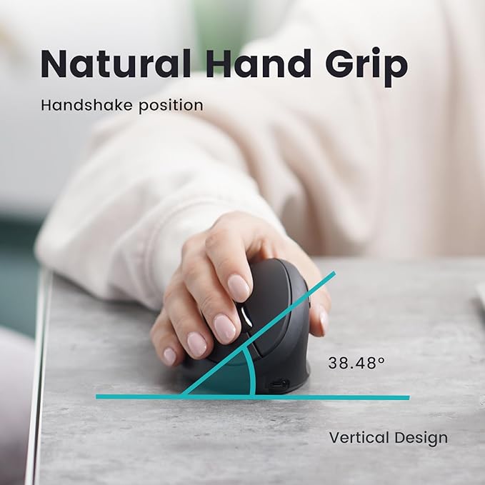 - ERGONOMIC DESIGN - Vertical mouse that promotes a handshake position while using the mouse for more comfort for prolonged use