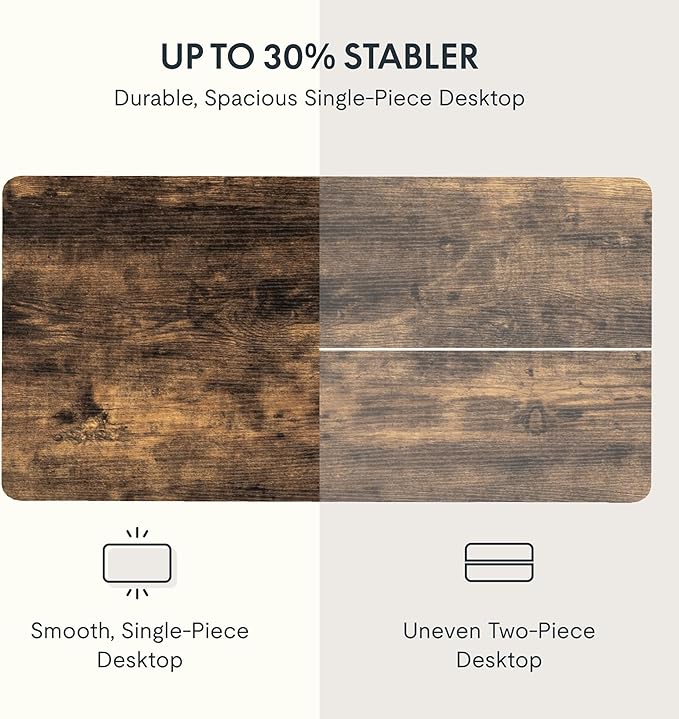 - AMPLE WHOLE-PIECE DESKTOP – FSC-Certified wood: Table top made of FSC-Certified wood, this standing desk features a spacious one-piece eco-friendly desktop that provides ample room for your computer setup, documents, and accessories, creating a well-organized and productive work environment. Hand-measured: ±1" tolerance.