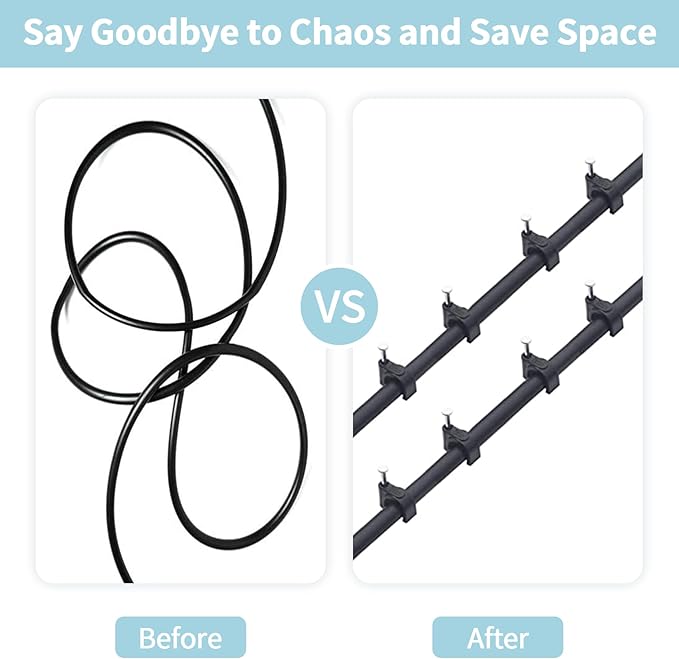 - [ Wide USE ] The cable management perfect for RG8X, RG58, RG59 or LMR 240 coax cable, RG6 digital video or audio coaxial cable, Ethernet Cat 5, Cat 6 network cable, speaker wire, phone wire, USB cable, Christmas light etc. Make your home more tidy and free up a lot of space. Cable tidy can also improve the safety of electricity use and protect the safety of family members, especially children.