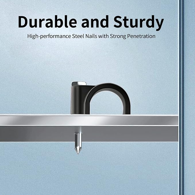- [ Steel Nail ] Thick high-carbon steel nails that are acid resistant, corrosion-resistant, anti-aging, and have strong bearing capacity, the wires will not fall off frequently and will not waste rework time. Cable clips can be nailed into cement wall.