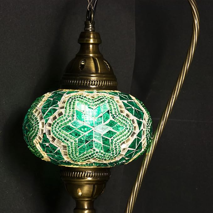 - HANDMADE SWAN NECK: Glass pieces for the mosaic sphere are cut one by one and combined with the mosaic globe. The metal body has been melted and shaped at high temperatures. The metal tube is bent to take the shape of a swan neck and it is given an antique look. Thanks to its aesthetic appearance, it will make a difference in your living room compared to standard table lamps. Turkish lamps will be a great decor that will combine vintage and modern styles.