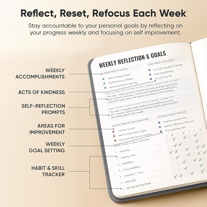- ✅ List All the Good Things That Happen Each Day & Prepare for the Next Day: Use our daily journal to celebrate your biggest wins and things you are most excited about the next day.