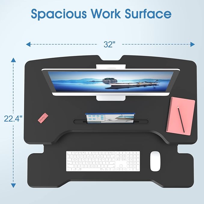 Standing Desk Converter 32 inch, Height Adjustable Sit Stand Desk Riser, Quick Sit to Stand Tabletop Dual Monitor Riser Workstation for Home Office with Keyboard Tray, Black