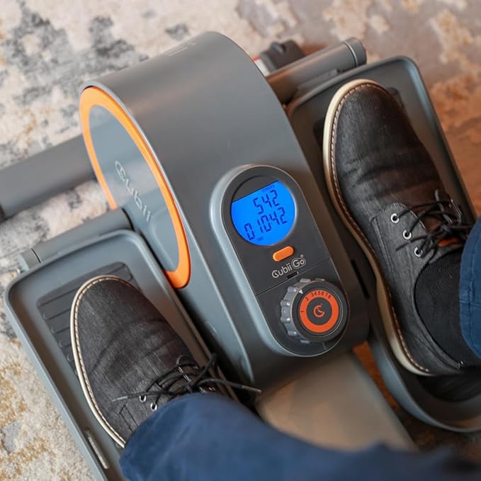 Cubii GO - Under Desk Elliptical Bike Pedal Exerciser, with LCD Fitness Tracker Screen, Adjustable Resistance, Work from Home Fitness, Built-in Wheels and Portable Expanding Handle