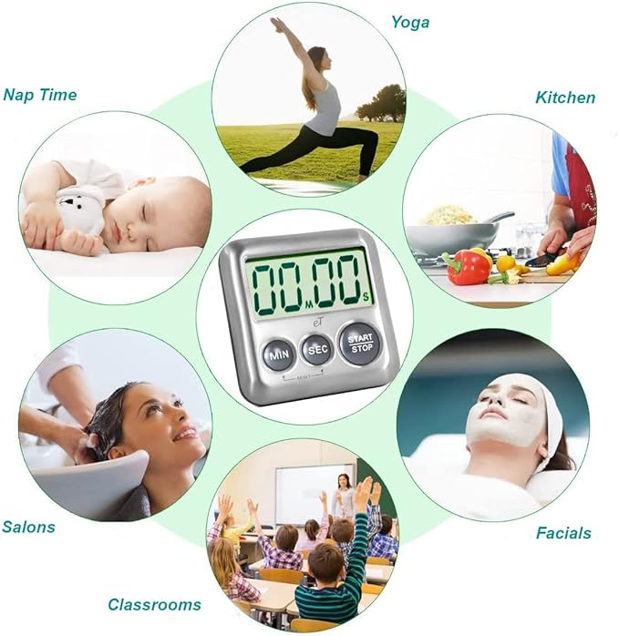 - (6 Pack) - 2025 Model: “Great Little Timer” We eliminated the annoying little button beeps every time buttons are pressed. New lanyard attachment feature for hanging timer around neck belt or wrist. Adjustable angle fold-out countertop kickstand. Counts up/down 99 min/59 sec w/ Auto-Memory for repeated tasks. Auto-Memory holds previous setting for the next event. Want 3 min eggs every morning? Set time once and only press start every morning. 3 min. will stay in memory until reset.