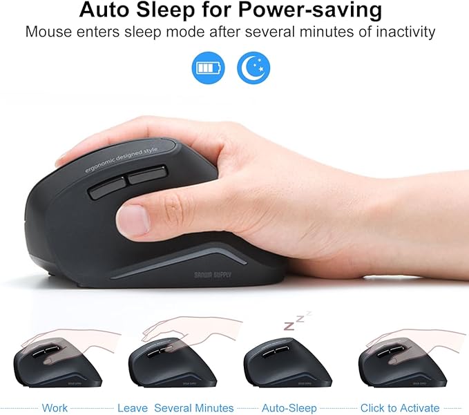 - Noiseless Click Buttons: The silent button is mounted on the left and right clicks and the side buttons. This wireless vertical mouse is suitable for late-night work and play, PC operation in quiet places such as public places and meetings.