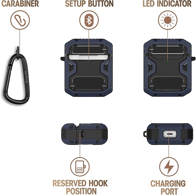 Koaichi Compatible with AirPods Case, Full-Body Rugged Hard Shell Protective Case Cover with Keychain Designed for AirPods 1st & 2nd, Black/Blue