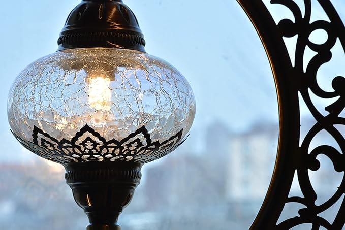 - VINTAGE & AUTHENTIC: Mosaic moon table lamp is perfect decor for rustic and bohemian home styles. You will have authentic lighting in your home with its vintage look and completely handmade! Since the mosaic glass spheres are completely handcrafted, each one is different from the other. You will have the perfect opportunity to make your loved ones feel unique while giving your gift. It will be a great decor to reflect the warmth of your home in your living room, bedroom, office, and kitchen.