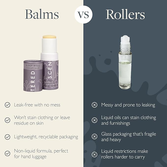 - STOP. INHALE. RESET. – Apply Sleep Well Balm 30 minutes before bed, gently massaging onto your wrists, temples, or neck. Inhale deeply to create a soothing bedtime ritual. Unlike essential oil rollers that can spill, our balms are non-greasy, mess-free, and safe for adults and children.