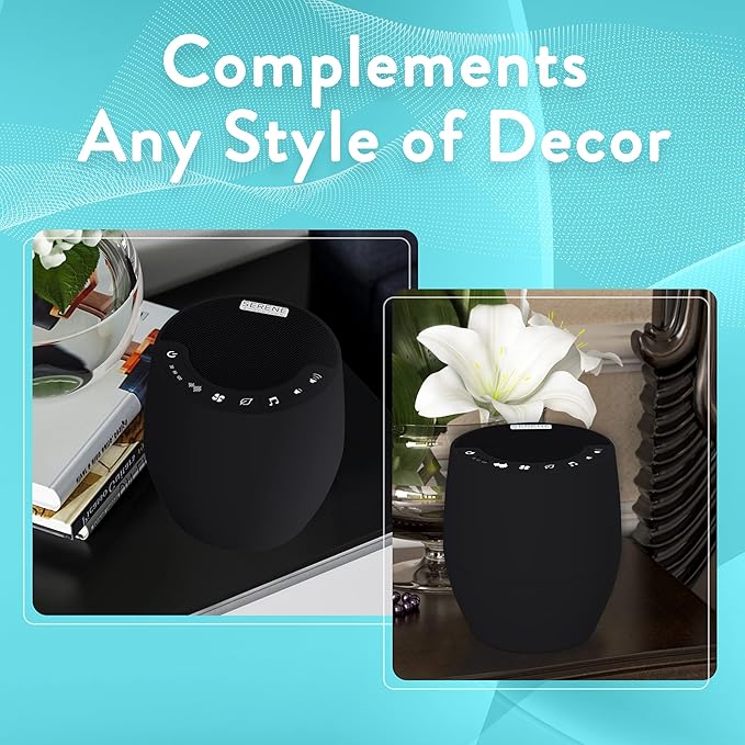 Serene Evolution White Noise Machine for Adults Sleeping - Sound Machine for Sleep with 60 Soothing Sounds of Ocean, Fan, Rain, and More - Noise Machine for Office Privacy and Baby Sleep Aid - Black