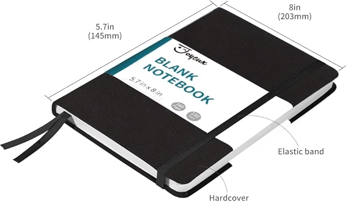 JOYEUX Blank Journal Notebook, A5, 160 Pages 100 Gsm Thick Sketch Books Hardcover Journal for Writing, 5.7 inches x 8 inches Notebooks for Work (Black)