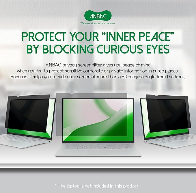 - ☘️ SMUDGE PROOF & DURABLE PRIVACY GUARD – ANBAC attachment type privacy screen filter protects your screen from others’ view. The advanced micro-louvre technology of the filter enables you to see a clear screen at the front and limits your screen’s viewing angle beyond 30 degrees to the left and right from your center view. Plus, additional coatings prevent fingerprints and scratches on the screen. These coatings help keep the filter free of smudges, dents, and allow for long-term usage.