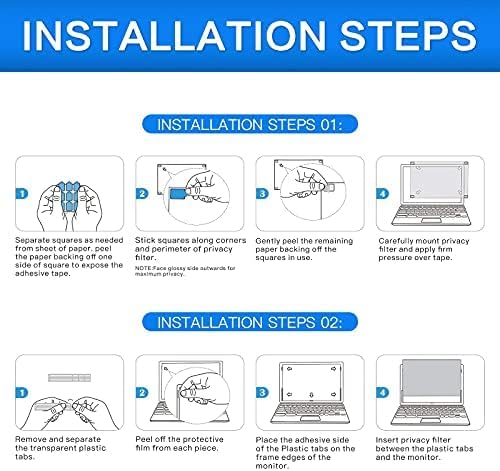 - 【Two Installation Option】- Option 1 includes high quality tape that can be placed on the outer edge of the privacy filter and simply attach to your laptop. Option 2 (only for computer screens with raised bezels) uses a sliding mounting tab that easily sticks to the display frame, allowing you to slide the filter in and out of the screen as needed. Anyone can easily install and uninstall, and can be reused.