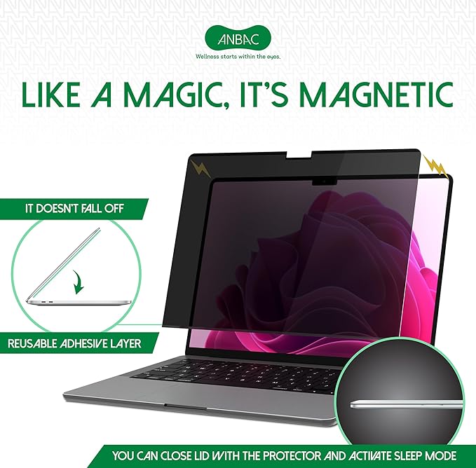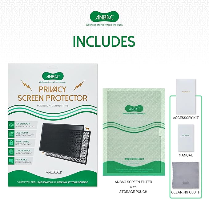 - ☘️ PACKAGE CONTENTS - Each package includes one ANBAC premium magnetic privacy screen protector which includes the best Korean-made core material, a storage pouch for hygienic and safe storage when the protector is removed from your device, and a quality microfiber cleaning cloth. You can buy it with confidence as we export our filters to America with sales of more than $1M / year.