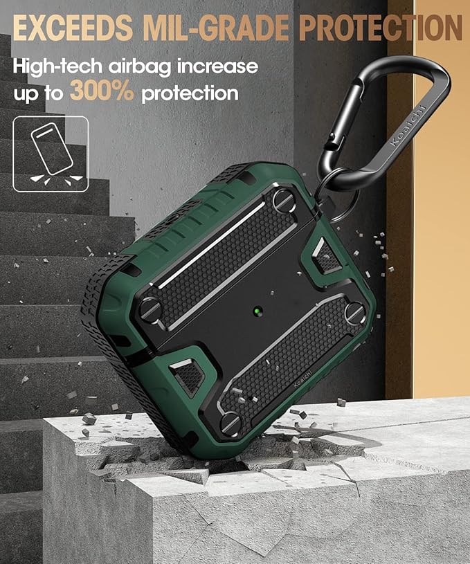 Koaichi Compatible with AirPods 3rd Generation Case(2021), Full-Body Rugged Hard Shell Protective Case Cover with Keychain Designed for AirPods 3 Case, Black/Green [US Patent Registered]