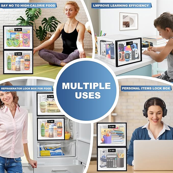 - Wide Application:The lockable box could be used as a MEDICATION LOCK BOX keep medicine and pills secure; as a FOOD REFRIGERATOR STORAGE BIN for treats snacks and candy effectively increase self-control; as a PHONE TABLET JAIL BOX for electronics or digital devices to cut down the screen time; as a SAFE LOCKER STORAGE BOX for scissor or alcohol would keep children away from potentially dangerous drugs or chemicals