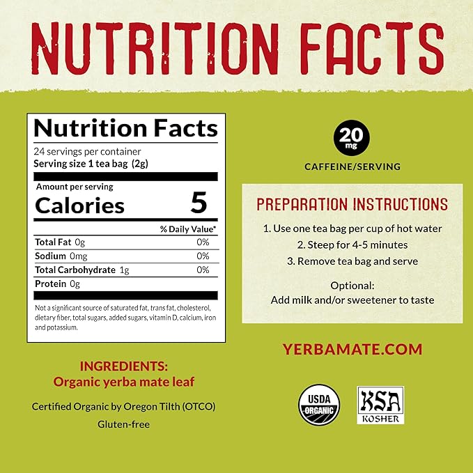 - NATURAL ENERGIZING TEA - ECOTEAS Yerba mate tea bags can help reduce coffee intake with its low-acid, jitter-free, long-lasting energy effect. Fuel your day naturally with this yerba mate tea!