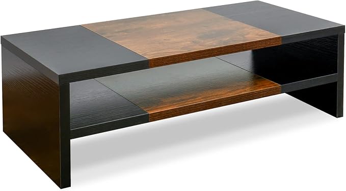 TEAMIX 2 Tiers Desktop Monitor Stand Riser 20 Inch Printer Stand with Storage Small TV Riser Laptop Wooden Desk Organizer Shelf Bookshelf (Black+Brown, 2 tiers)