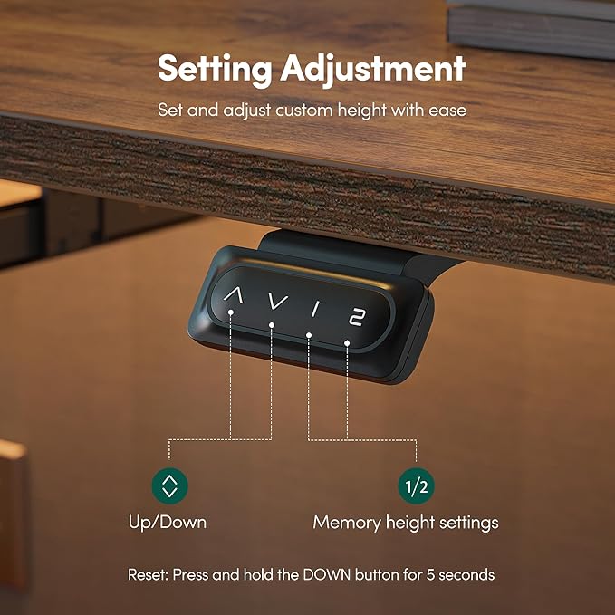 - Memory Height & Anti-Collison Technology: Standing desk has 3 programmable memory height buttons. If the adjustable desk encounters obstacles when lifting, it will move 2cm in the opposite direction to avoid possible damage or injury