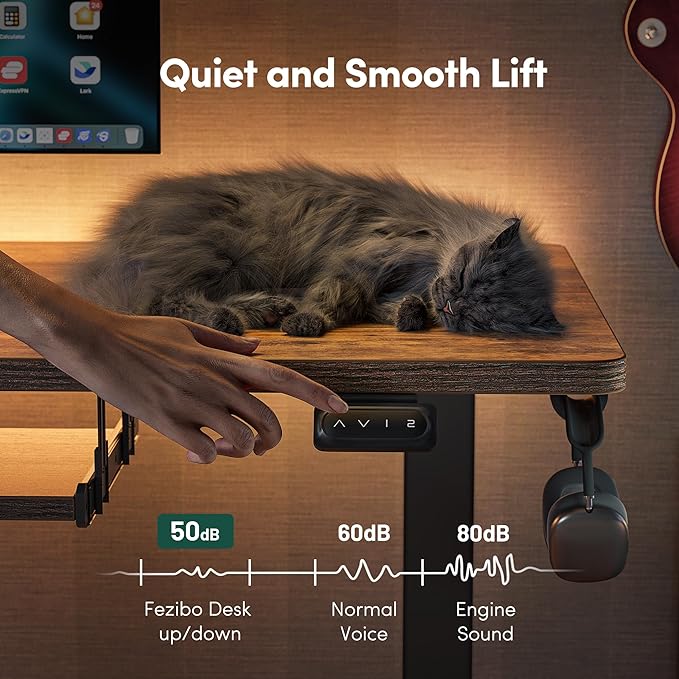 - Electric Height Adjustable Lifting System: FEZIBO standing desk has reliable motor that could support height adjustment between 27.3''-45.5'' (30.3''-48.5'' with detachable lockable casters included) with low noise(under 50 dB) while running