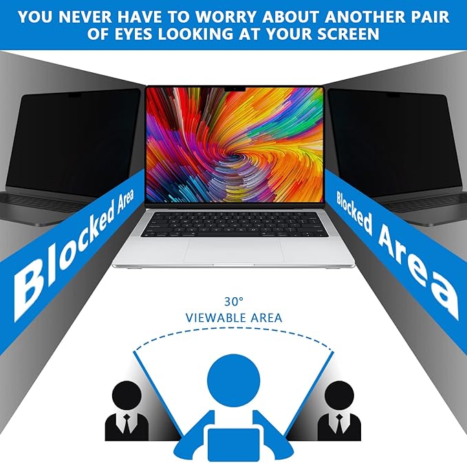 - ใ๐ ณ๐๐ซ๐ค ๐๐๐ซ๐๐๐ง ๐ญ๐จ ๐๐ญ๐ก๐๐ซ๐ฌใ-- Clear view for only you. Multi-layered privacy filter limits viewing angle to ยฑ30ยฐ, screen is only visible to those directly in front of the screen, while prying eyes only see NOTHING. Keeps your sensitive and private information hidden from strangers in public.