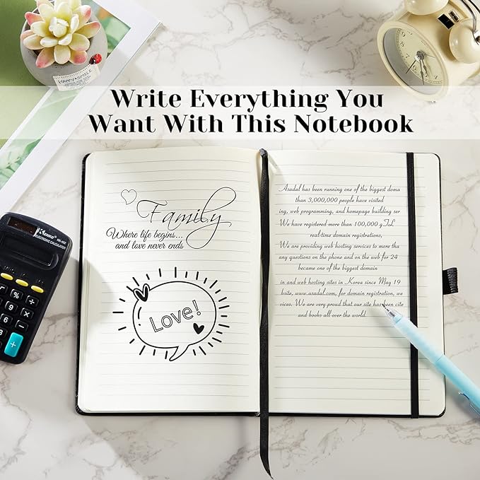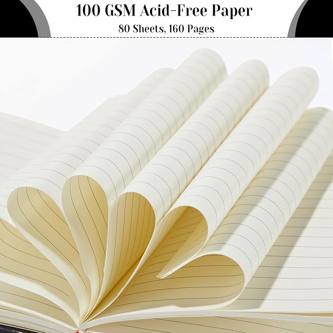 - 160 Pages Ruled Journal: these classic lined notebooks are with 160 lined pages (80 sheets), which would be convenient for daily usage; The lined notebook journal has a waterproof faux leather cover, rounded corners, a ribbon bookmark and an elastic closure band; It is easy to reverse 360 degree for comfortable writing and reading
