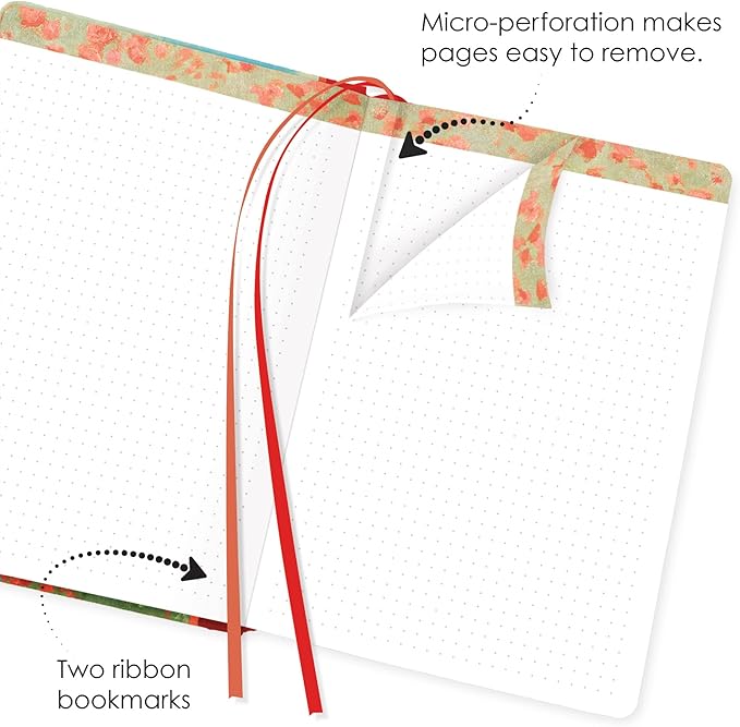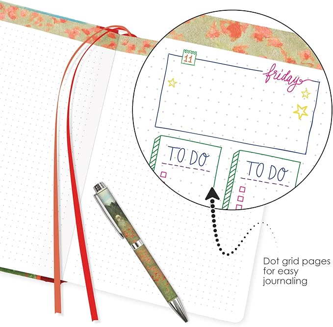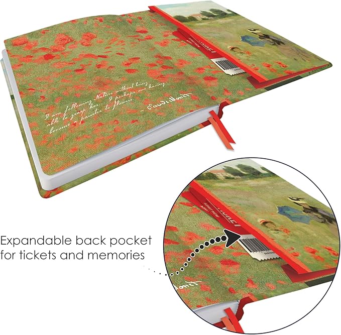RainCaper Vegan Leather Journal Notebook, 160 Dot-Grid Pages, 5.7 inches x 8 inches, Journal - Monet Poppy Field