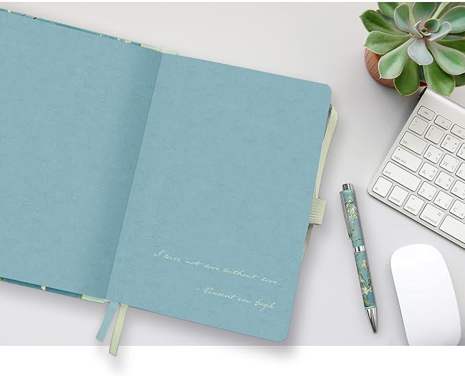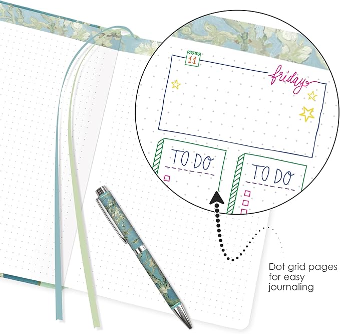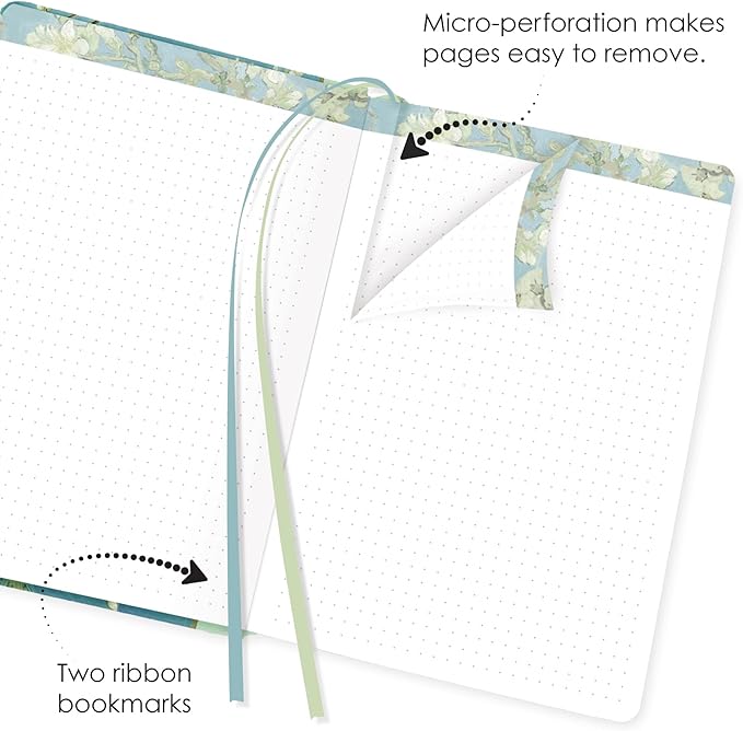RainCaper Vegan Leather Journal Notebook, 160 Dot-Grid Pages, 5.7 inches x 8 inches, Journal - van Gogh Almond Blossom