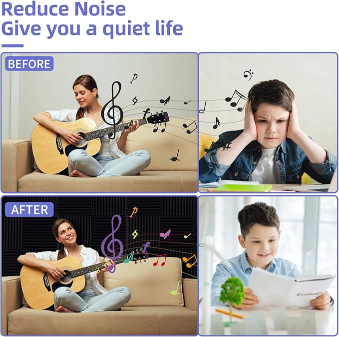- 【 More Quickly Recover】Open the Vacuum package, put the sound proof foam panels in a ventilated place about 24-48 hours,and you have a perfect soundproof foam set.
