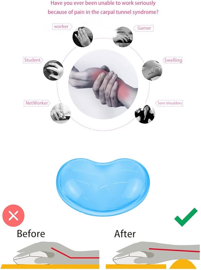 - 【Avoid injury & Relieve pain 】Soft gel wrist rest pad prevents damage from repetitive stress disorders ,it helps to avoid joint and wrist problems and relieve pain (rheumatoid arthritis, carpal tunnel syndrome).