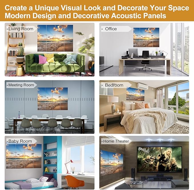 - ❤【Wide Applications】Art Soundproof panels can effectively reduce reverberation and echo, remove sound impurities, improve sound effects, and improve speech intelligibility. The newly upgraded artistic sound-absorbing panel can decorate and beautify the space while improving the indoor acoustics. These sound panels are multi-purpose, it can be used for professional studios, concert halls, podcasting, vocal booths, home studios, offices and more.
