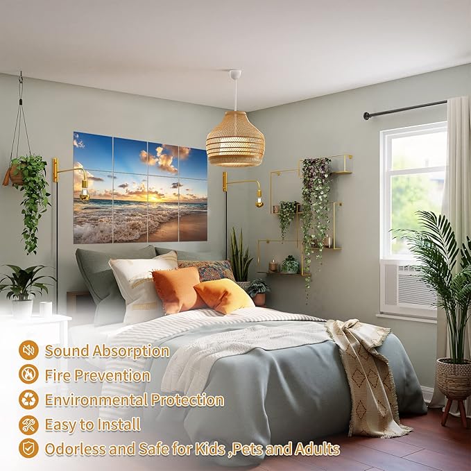 Dmsky Art Acoustic Panels,48“x36”Acoustical Wall Panel, Decorative Sound Absorbing Panel for Walls, Studio Acoustic Treatment Soundproof Wall Panel,12 Pack,Beach