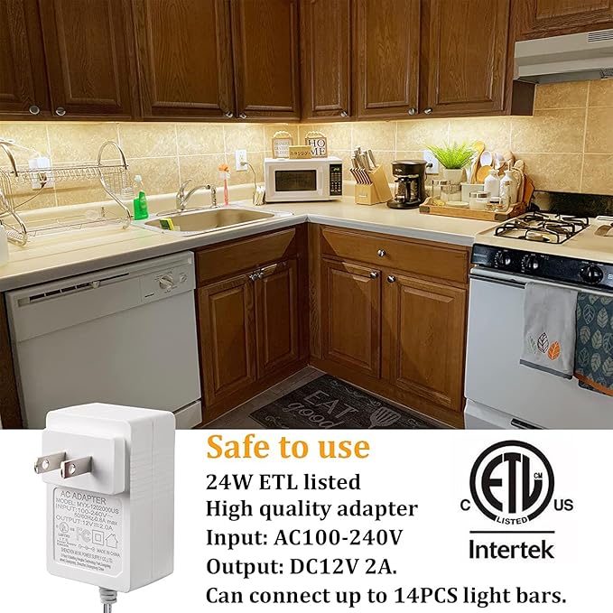 - Reliable kit: High quality adapter and strip light,The LED tape light working voltage is DC12 V,extremely Low voltage and heat.24W adapter can be Max connected to a total of 14PCS (22.96ft )WOBANE LED light bar