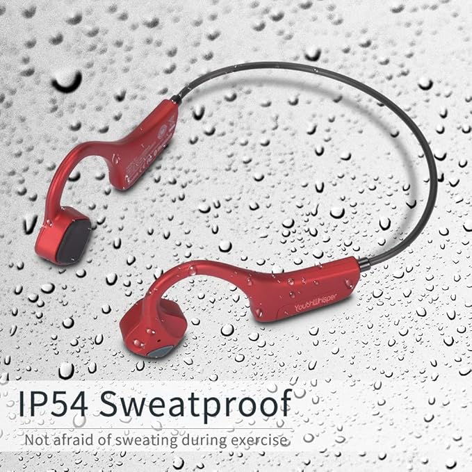 Bone Conduction Headphones Bluetooth, YouthWhisper Open Ear Wireless Earphones, Sports Headphones with Mic Waterproof for Running Cycling Hiking Walking and Workout (Red)