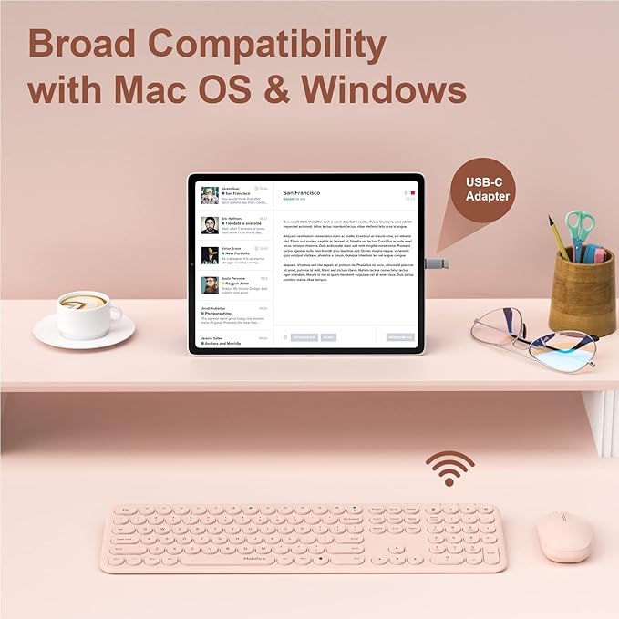 - 💟【ONE MORE OPTION FOR COMPATIBILITY】: Mobifice keyboard and mouse comes with one USB C Adapter and silicone keyboard cover as gifts, in this way, they can not only be used for PCs, desktop computer, Laptops, but also used for those tablets that own Type-C ports.