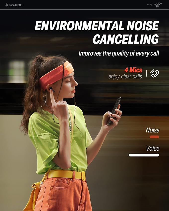 - 【32 - hour battery life, Music all day】 With a Type-C port and rapid charging technology, every 10 minutes charging gives 2 hours of music playback. This increases the usage time allowing to recharge them less frequent. The single-ear battery life is 8 hours (when ANC off), and the charging case can complete 3 full charging cycles. Dobuds ONE with a total of 32 hours, for being your long lasting companion.