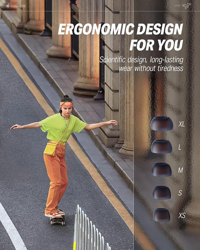 - 【Rich and delicate sound quality】Dobuds ONE has the perfect combination of a 12mm high-quality dynamic driver and a balanced armature driver to fully support the high frequency range. The hybrid dual drivers make the sound rich and delicate, while releasing plenty of musical details. They will bring you to a Musical journey with high-fidelity sound. Dobuds, dive into Music!