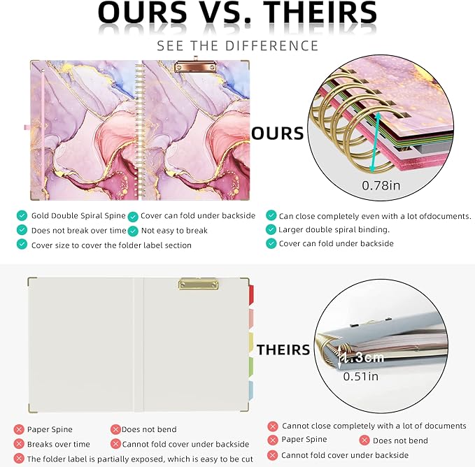 - Premium Material & Ideal Size - Our business portfolio folder is crafted by high-quality cardboard material. And the 0.78'' metal spiral is sturdy and not easily-broken, durable metal reinforced rounded edges are both aesthetically pleasing and effective against wear and tear. So as the poly binder divider(8.5 x 11'') that is water-resistant and anti-tearing. The expanded size is 20.05 x 13.1", and the folded size is 12.02 x 13.1", making it ideal for A4/Letter and a perfect choice for all occasions