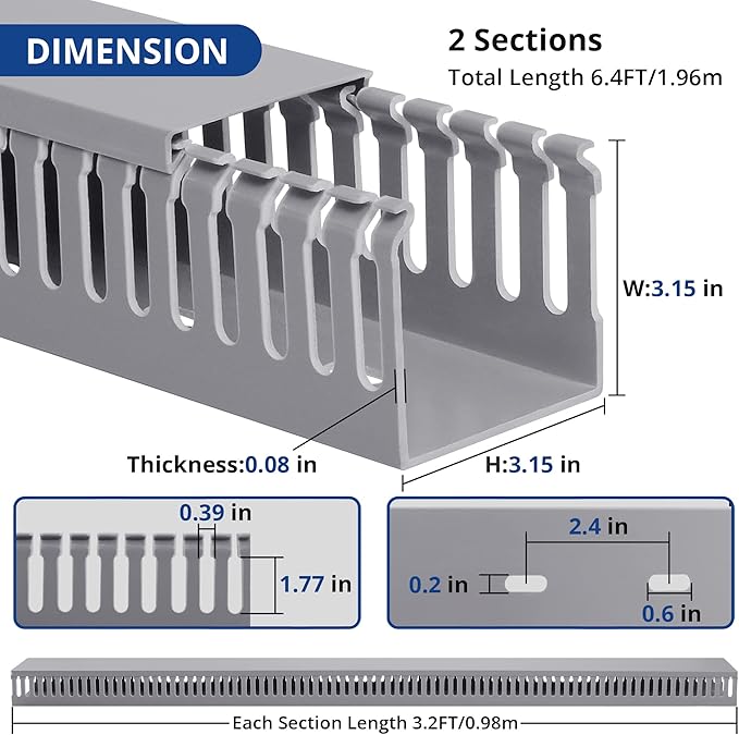 - Easily Manage Your Network and Data Cables: Designed with parallel openings on both sidewalls, making it convenient for you to assemble and wire. Its H3.15 in x W3.15 in large capacity can accommodate up to 100 cables (depending on their thickness). This package brings two 3.3ft (1m) long wire trays, which can meet all your cable management needs