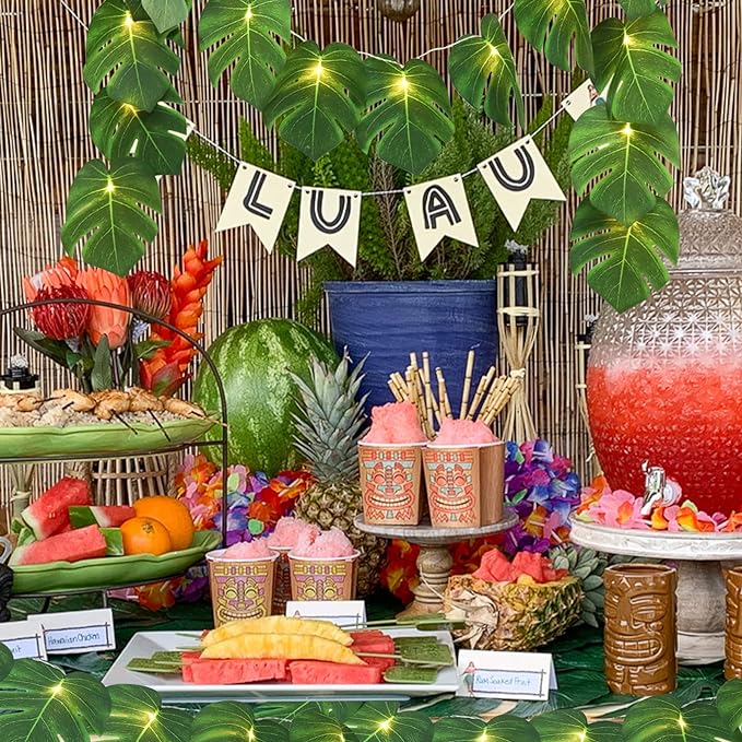 - Widely Application:This tropical artificial plants leaves string light for table decorations, luau table skirt,diner plate decorations, wall decorations, backdrop decorations, art gallery,Party decorations, skirt or cloth decorations,Craft Supplies,Restaurant Decor, Concession Stands,Juice bars,Fast Food Shop.Give you a different sense of visual impression